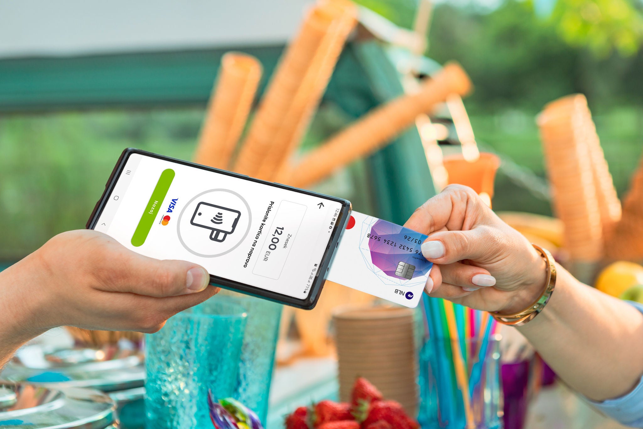 Prihvat platnih kartica Visa ili Mastercard vrši se na isti način kao i na POS terminalima, s tim da se transakcije na NLB Smart POS vrše beskontaktno. To znači da fizičku karticu (ili uređaj na kojem se nalazi digitalna kartica) kupac jednostavno približi uređaju na kojem je instalirana NLB Smart POS aplikacija.